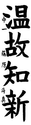 筆先までよく動いて、悠々と筆を運ばれた行書作品です。名前も行書で上手です。